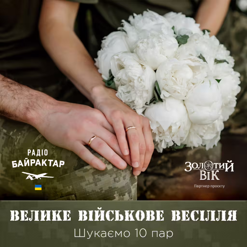 Саме тому ми вирішили організувати на Радіо «Байрактар» проєкт «Велике Військове Весілля», перший з моменту початку війни, з метою нагадати, що навіть під час війни кохання і життя перемагають.