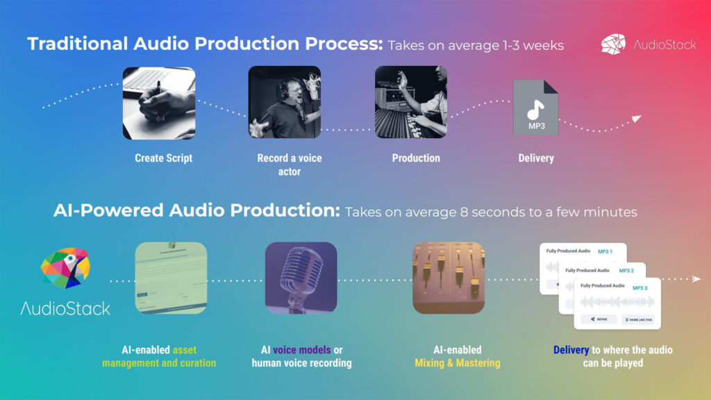 Водночас AudioStack не варто розцінювати, як заміну повноцінного студійного продакшену і роботу дикторів. Фінальні рекламні ролики, як і раніше, записуються у професійній студії з участю креативної команди. Платформа використовується як допоміжний інструмент на етапі підготовки сценарію — щоб перевірити текст, протестувати варіанти повідомлення і краще підготуватися до запису. Тобто саме для вдосконалення майбутнього продукту, створеного у професійній повноцінній студії.