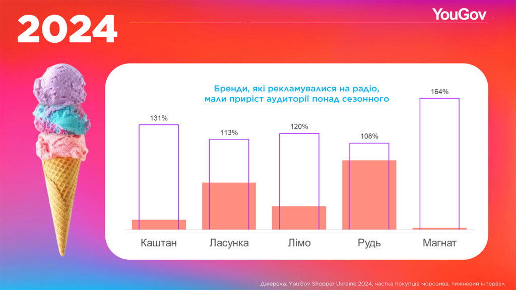 Завдяки ексклюзивній експертизі YouGov ми можемо визначити продажі морозива, і як певна рекламна стратегія та правильний медіа-мікс впливає на продажі.
