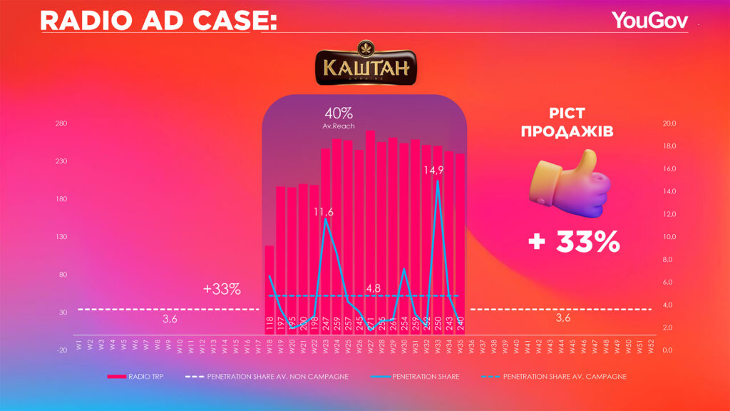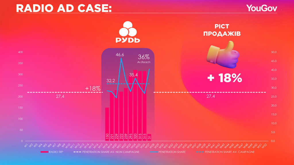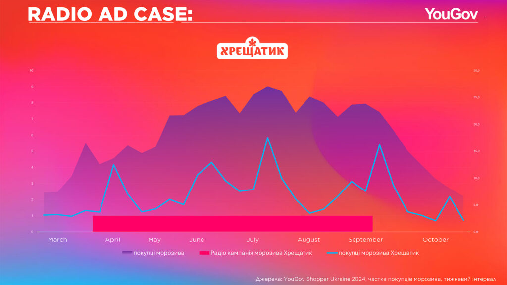 Саме таку аналітику демонструє кейс, підготовлений TAVR Media спільно з YouGov CP Ukraine, який ілюструє реальні результати рекламної кампанії на радіо.